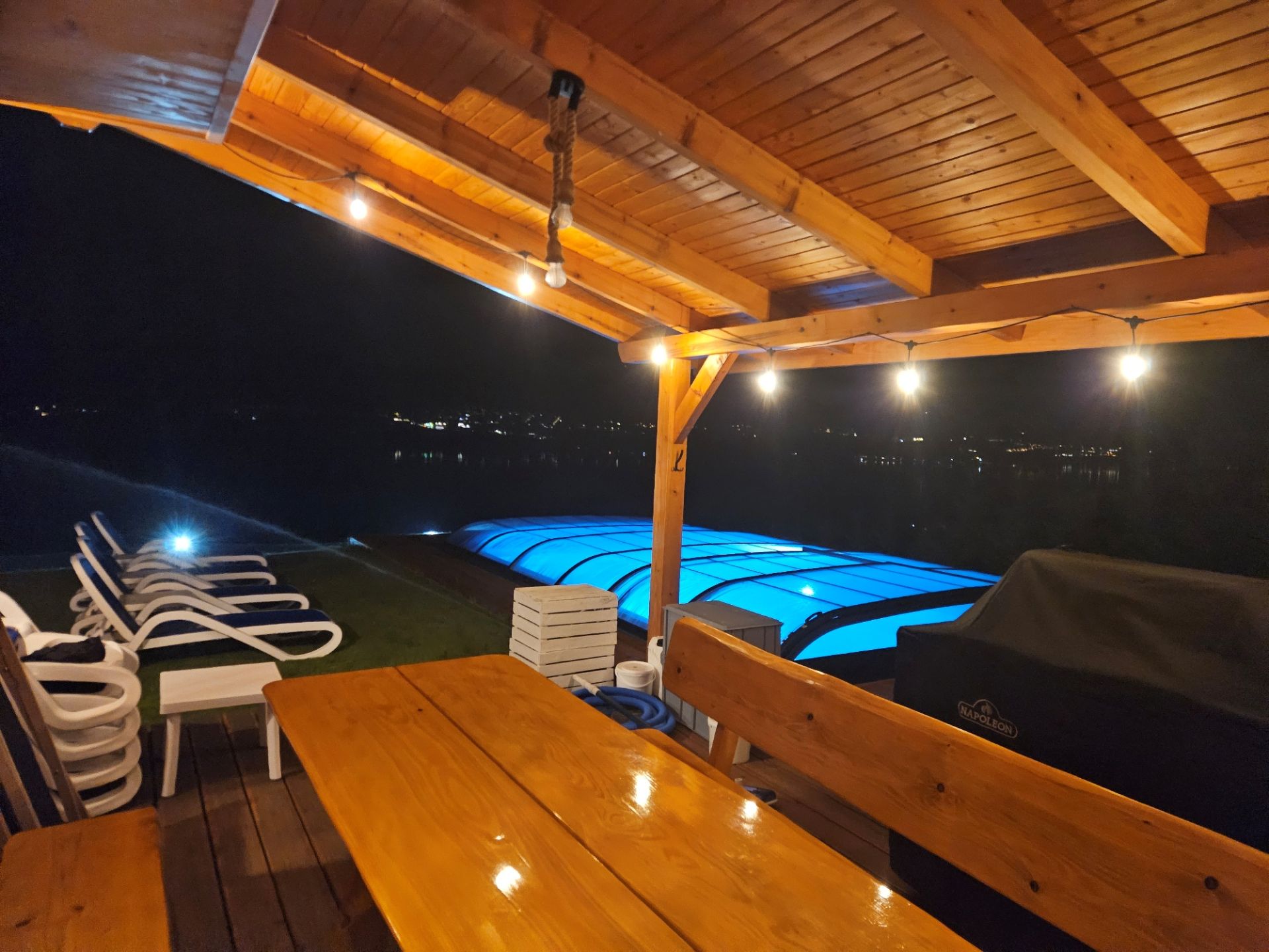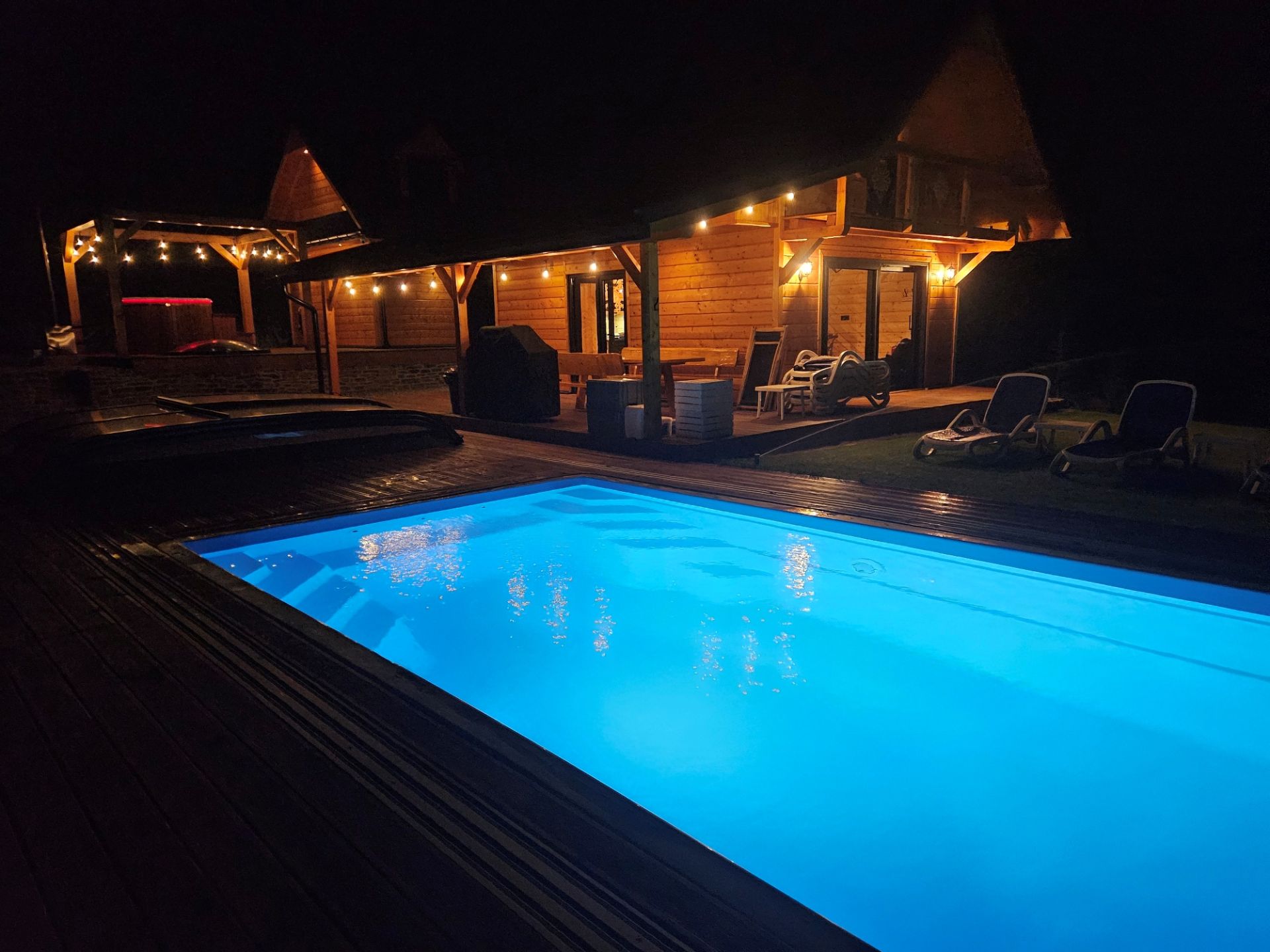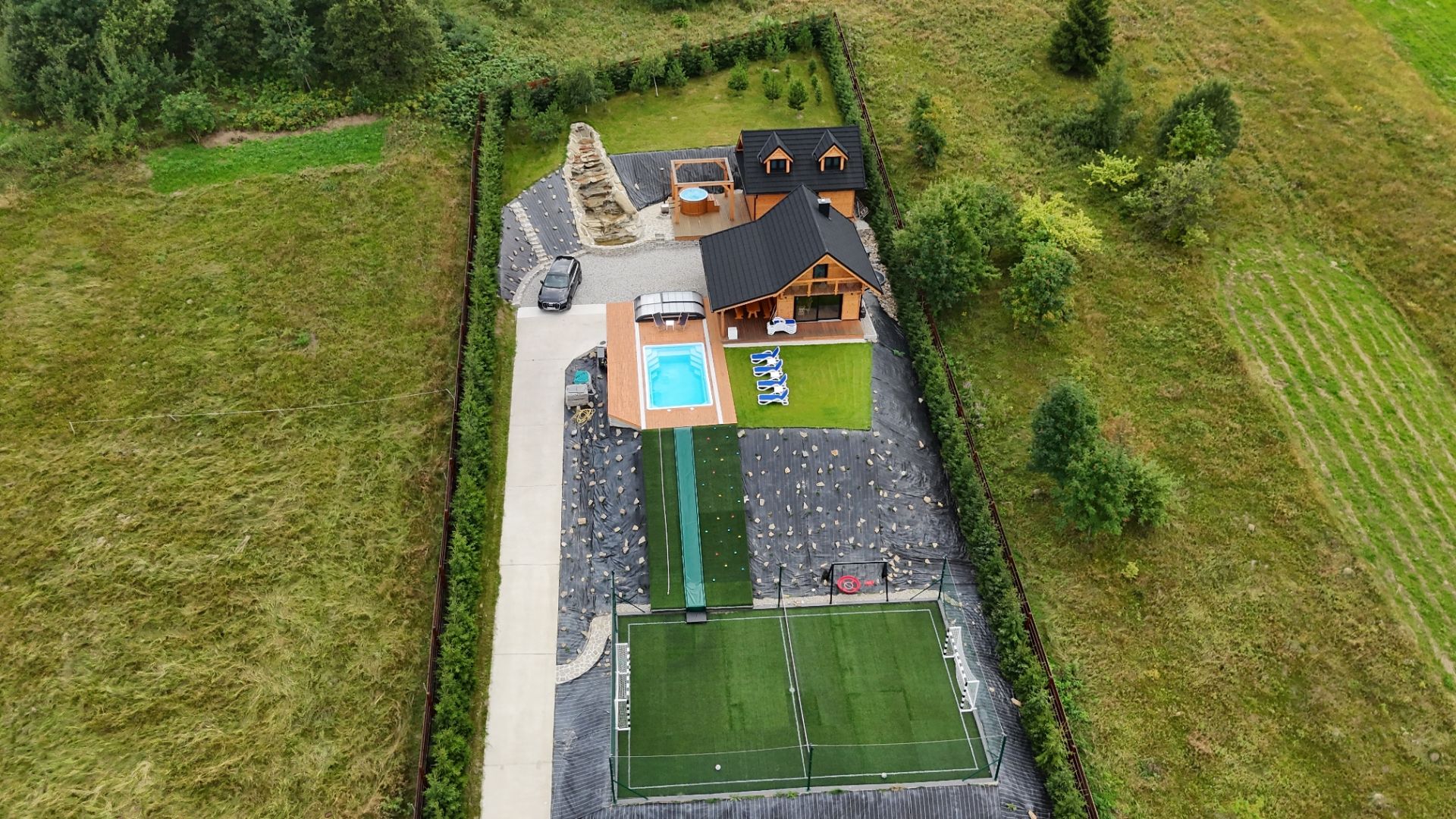 Velo Active & Spa – Nad Zalewem 32 Drewniany domek z basenem, jacuzzi, balią, sauną, boiskiem sportowym i klimatyzacją Widok na Jezioro Czorsztyńskie i góry brak sąsiadów – pełna prywatność . Tu aktywność spotyka się z relaksem